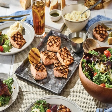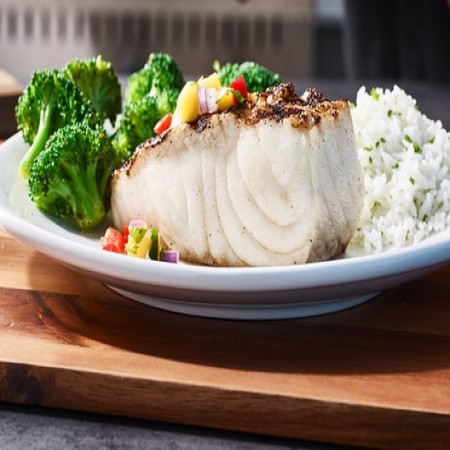 Our fish is lightly seasoned and wood-grilled. Served with choice of two signature sides