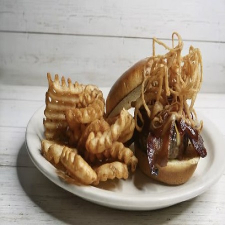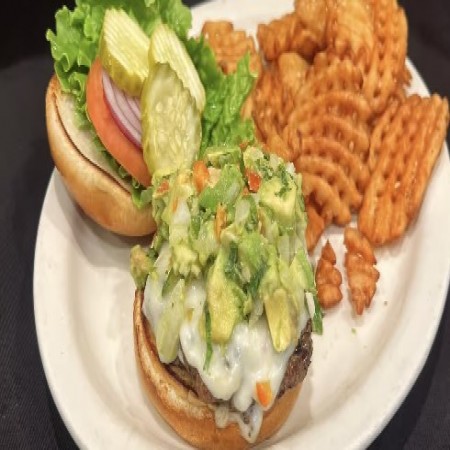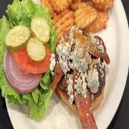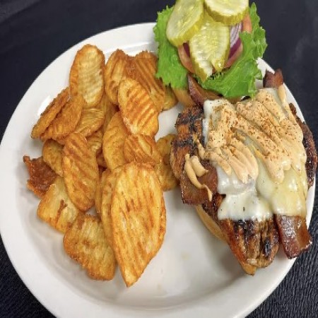 All of our huge burgers, are 8 oz of hand-pattied local Indiana USDA prime beef. Served on a fresh brioche bun, with lettuce, tomato, onions, and pickle chips. For a lighter option on any burger, ask your server to substitute a black bean burger, grilled chicken breast, or portabella cap. All burgers are served with a choice of one side.
