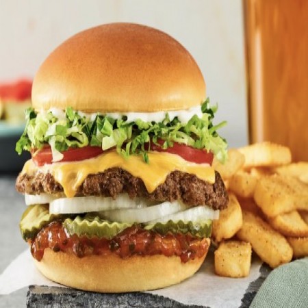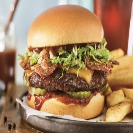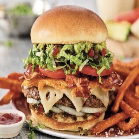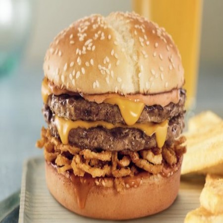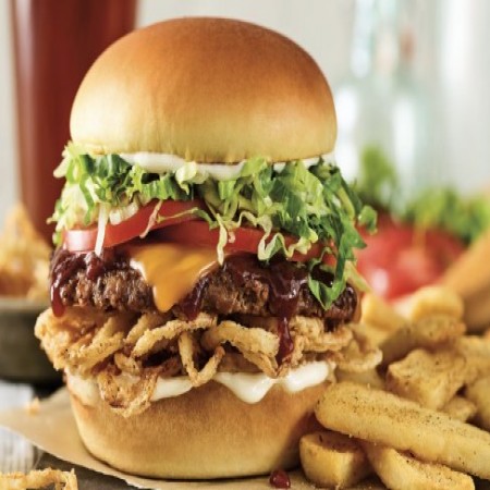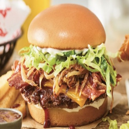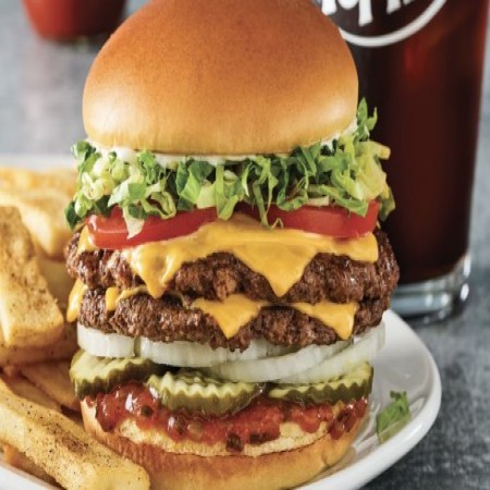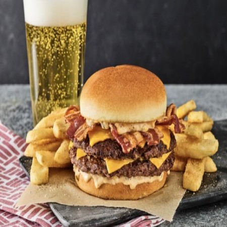 Our pub-style tavern double burgers are made with two of our classic patties and served with red robin steak fries.