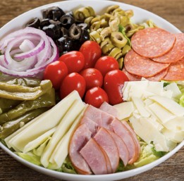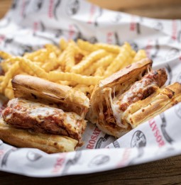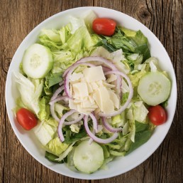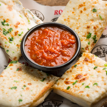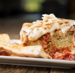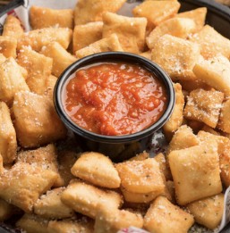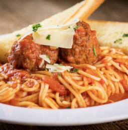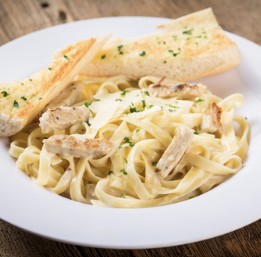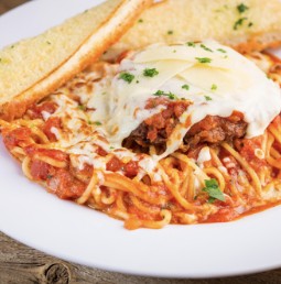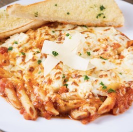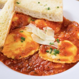 Pastas are served with a side of garlic bread & romano cheese.
