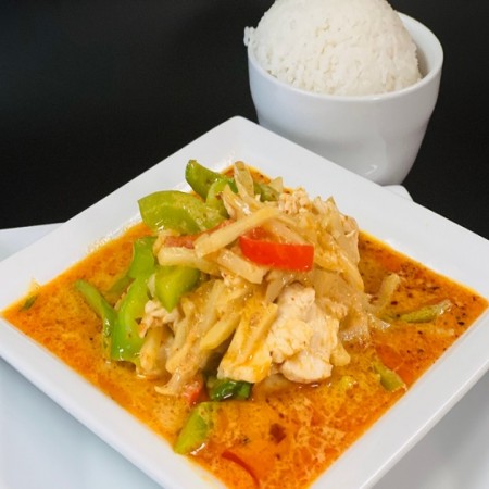 All curries feature coconut milk, shrimp paste, & served with steamed white rice. Important: Curries are prepared medium spicy & cannot be adjusted to mild.