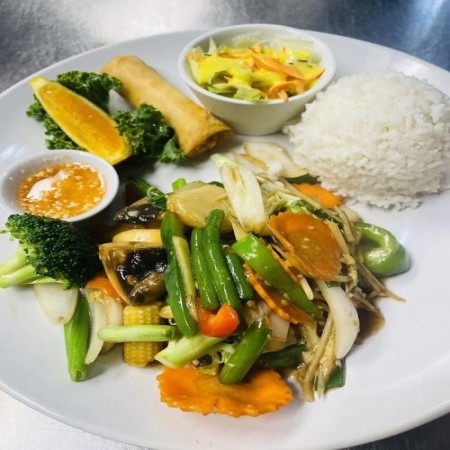 Choice of meat: chicken, beef, pork, tofu, or vegetable. Shrimp for extra charge.