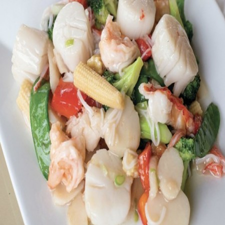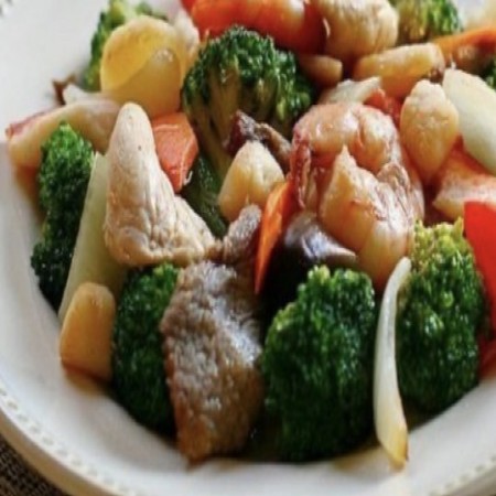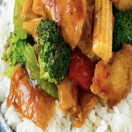 Includes fried rice (peas, onions, & carrots), & a choice of soup, beverage, or spring roll. Soup choices: egg drop, wonton, or hot & sour.