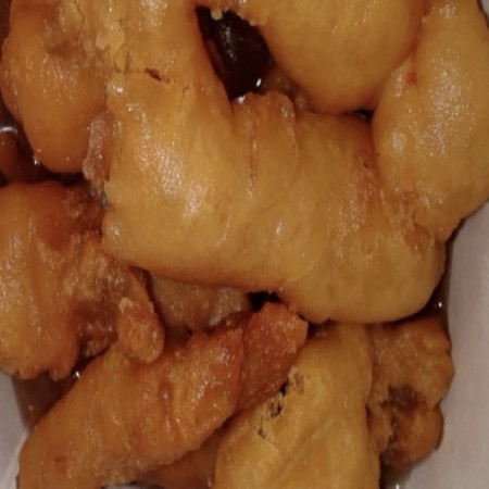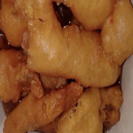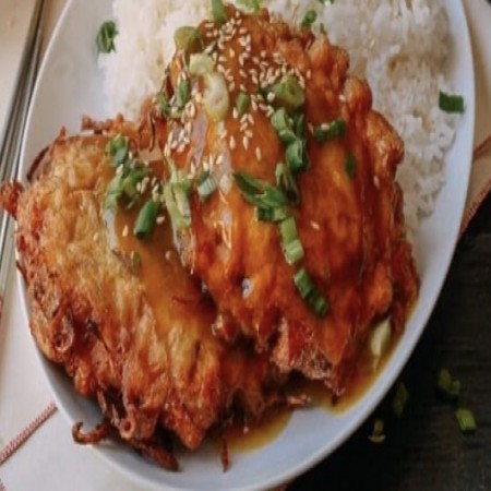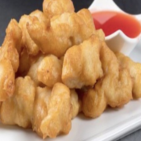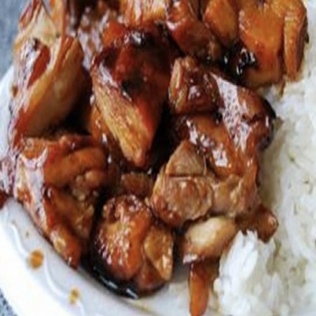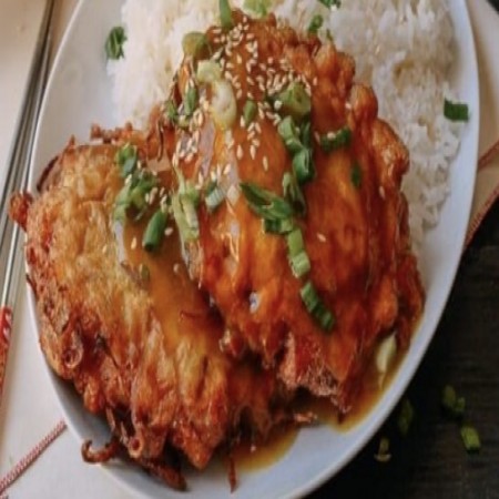 no salt, oil, or corn starch. served with white rice and brown sauce on the side.
