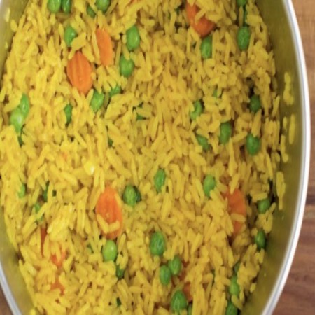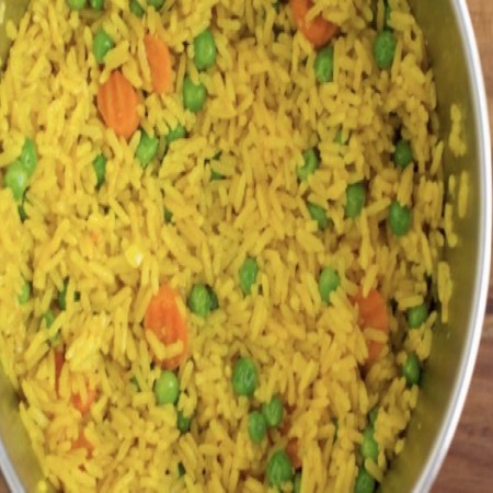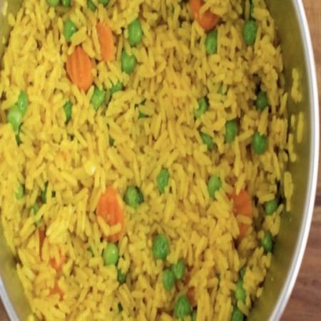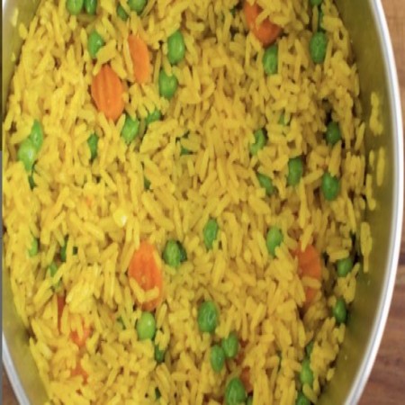 Includes fried rice (peas, onions, & carrots), & an egg roll.